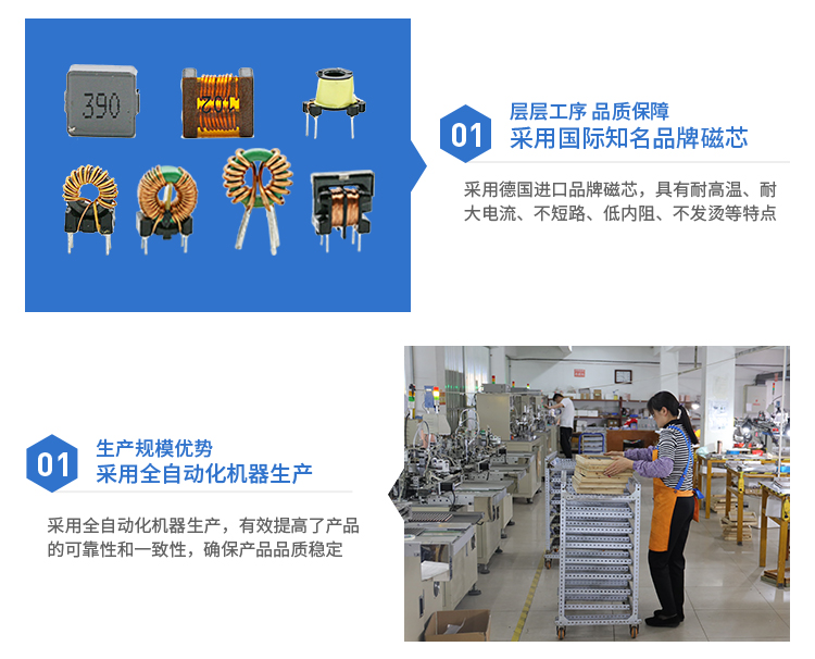 2. 可以串聯或并聯連接,提供較寬的電感值和較大的額定電流值;