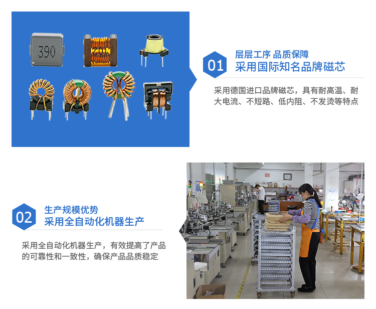 優(yōu)勢點:采用磁性粉末壓鑄一體成型工藝,將線圈繞組完全包裹在磁芯內(nèi)部。