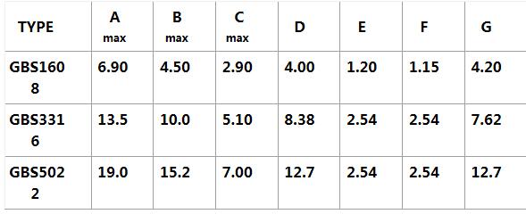 四、貼片功率電感GBS封裝尺寸列表: